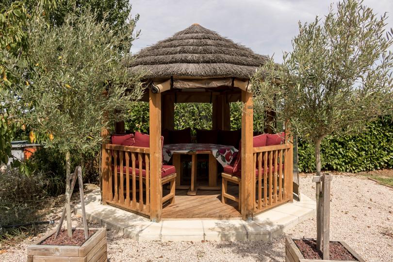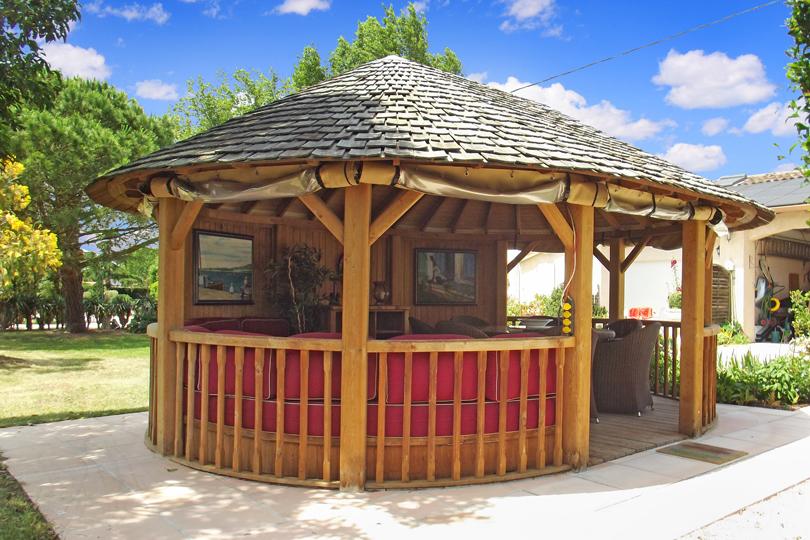 | Paillote Pavillon (Crown Guenièvre) en cèdre rouge équipé d'une table avec banquette pouvant accueillir 8 personnes | 9,0 m² |