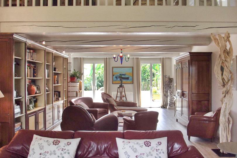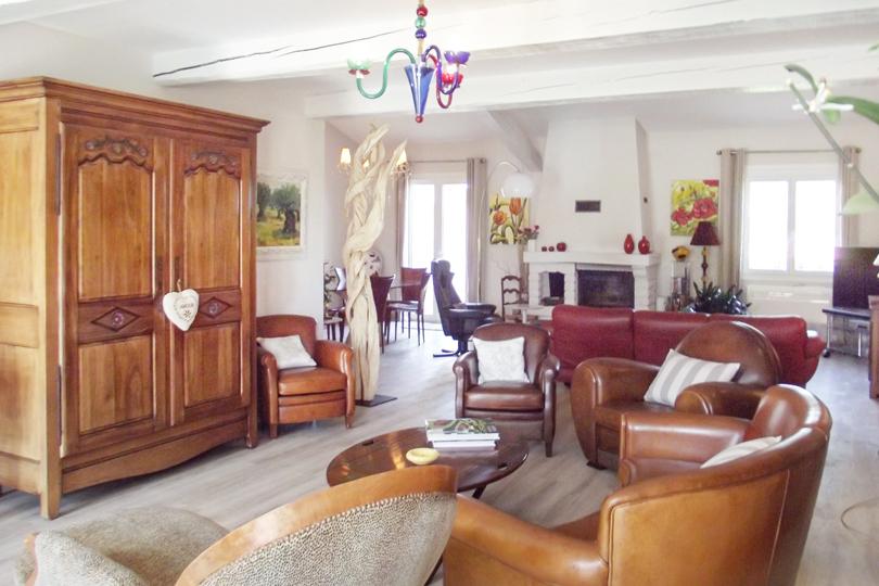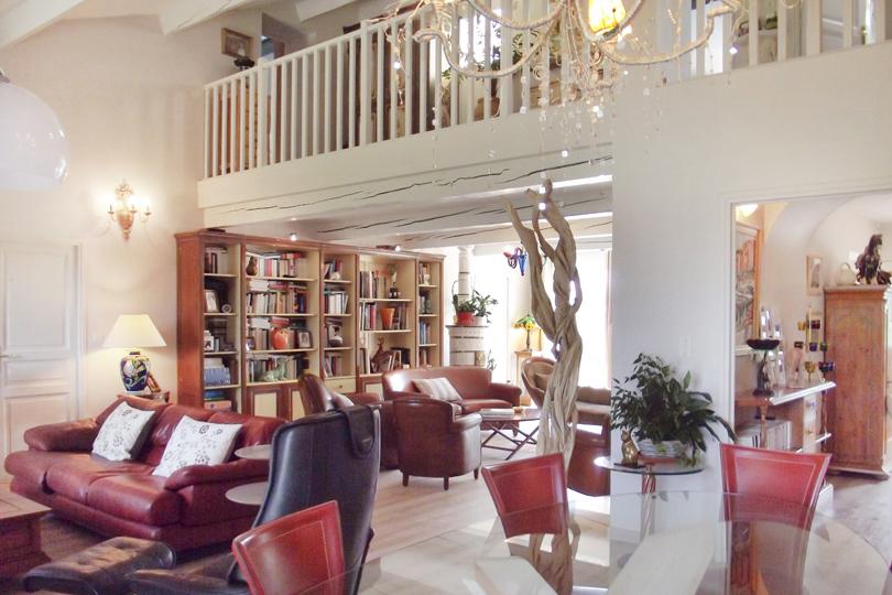 Vaste pièce à vivre (salle à manger + salon) avec cheminée |